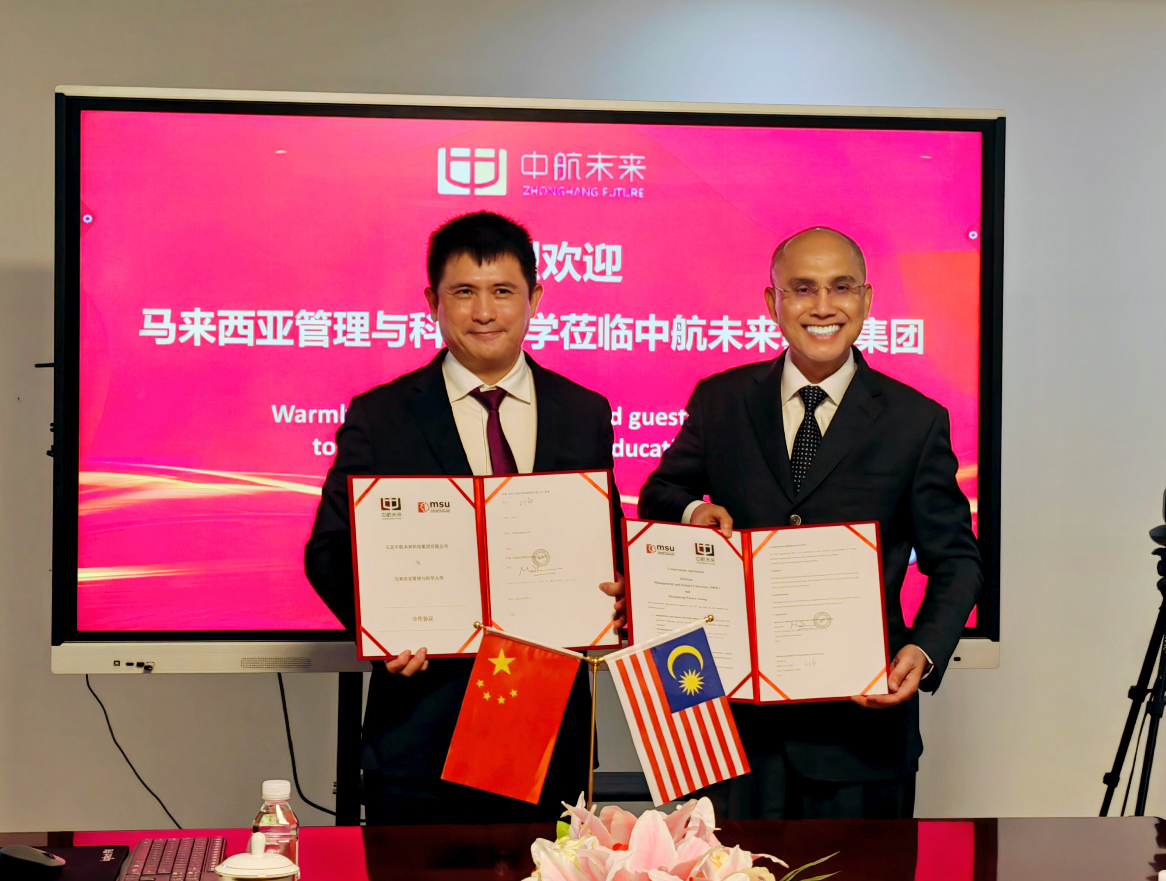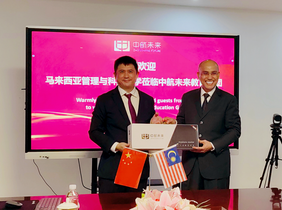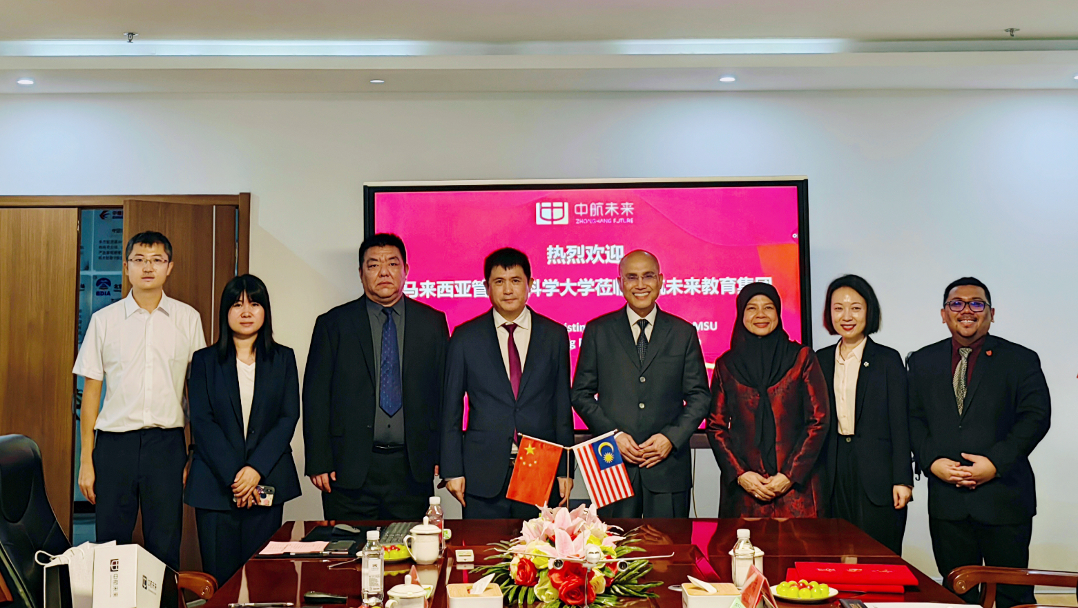中航未来讯 2025年10月16日,马来西亚管理与科学大学(Management and Science University, MSU)校长丹斯里·莫赫德·舒克里博士率代表团一行,访问中航未来集团总部,并就中马两国在高等教育与职业教育领域的合作进行了深入交流。